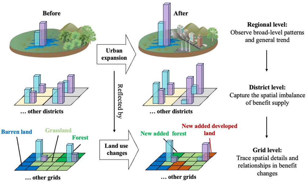 Using remote sensing imagery, geographic information systems (GIS), and ecological modeling, the researchers analyzed spatial changes in economic benefits and ecosystem services resulting from urban expansion. They further explored how these changes affect residents' multidimensional well-being.