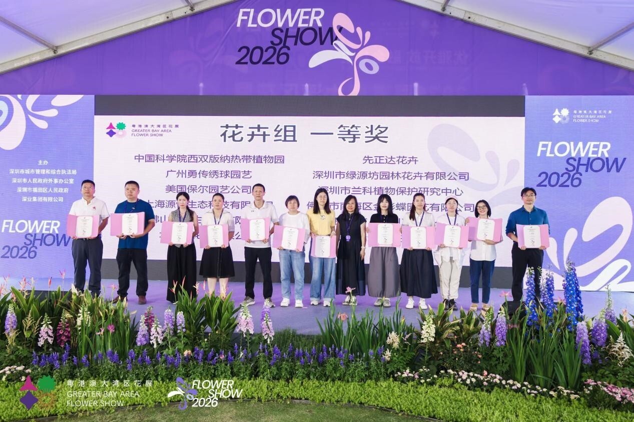 A flower show of Guangdong-Hong Kong-Macao Greater Bay Area was recently held in Shenzhen. Xishuangbanna Tropical Botanical Garden (XTBG) participated in the event by presenting eight (8) newly bred varieties developed through its own research. XTBG displayed a wide range of popular ornamental flowers, including Paphiopedilum, Dendrobium, Bauhinia, and Mussaenda. Two orchid varieties won first prizes for their unique colors and elegant forms. Other Mussaenda, Bauhinia and Dendrobium varieties also secured second and third prizes respectively. In the group awards category, XTBG was honored with the Best Co-contribution Award for its high-quality entries and professional organization. The exhibition showcases achievements in breeding new flower varieties of XTBG. The garden remains committed to the research and cultivation of innovative and superior flower varieties, providing vital species support for the development of the floriculture industry.